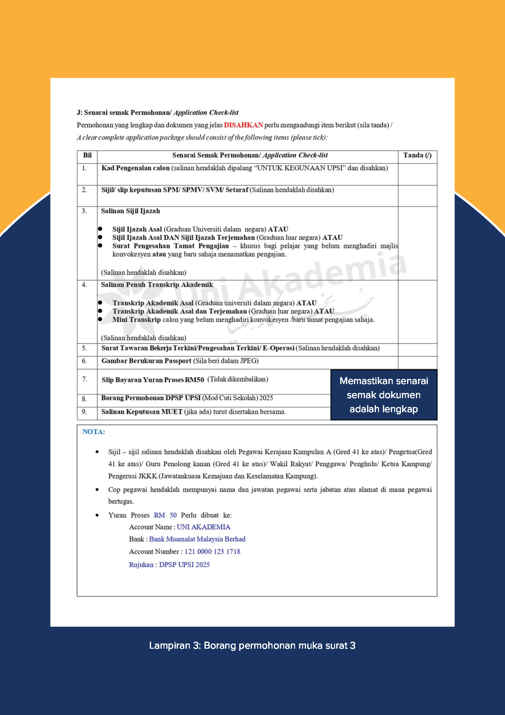 Senarai semak dokumen permohonan