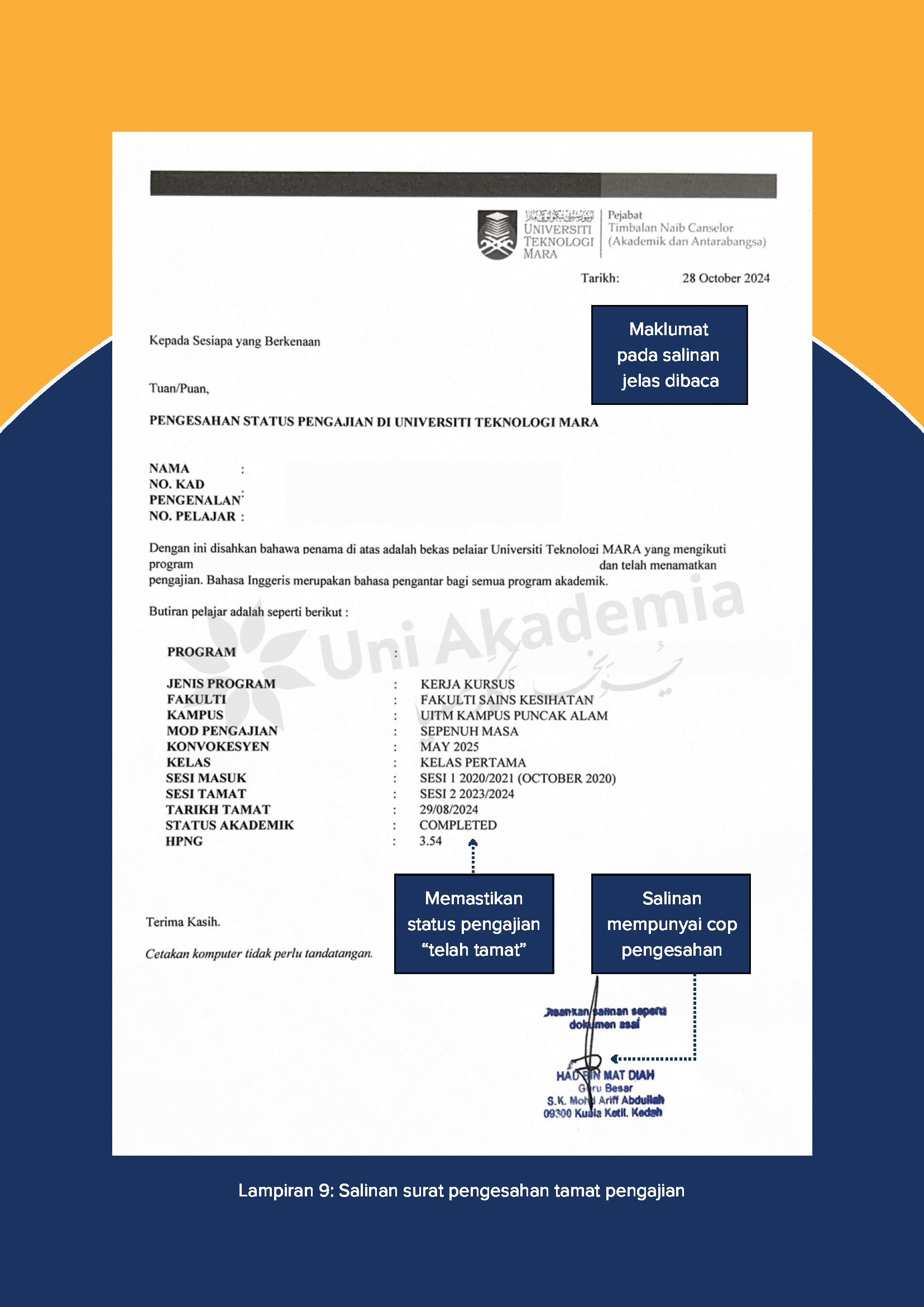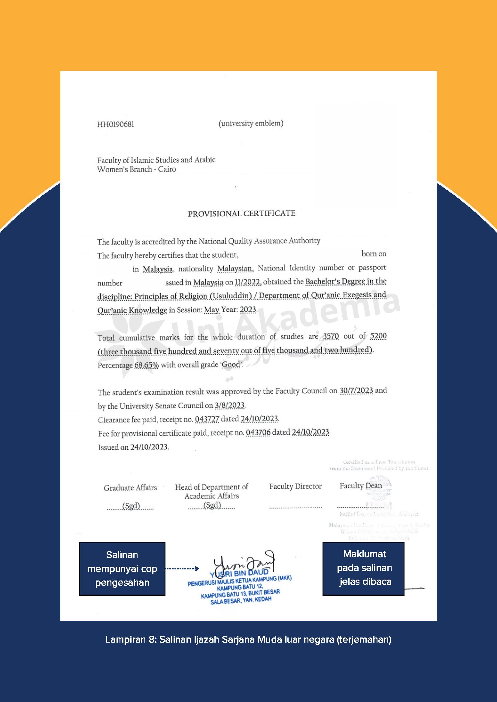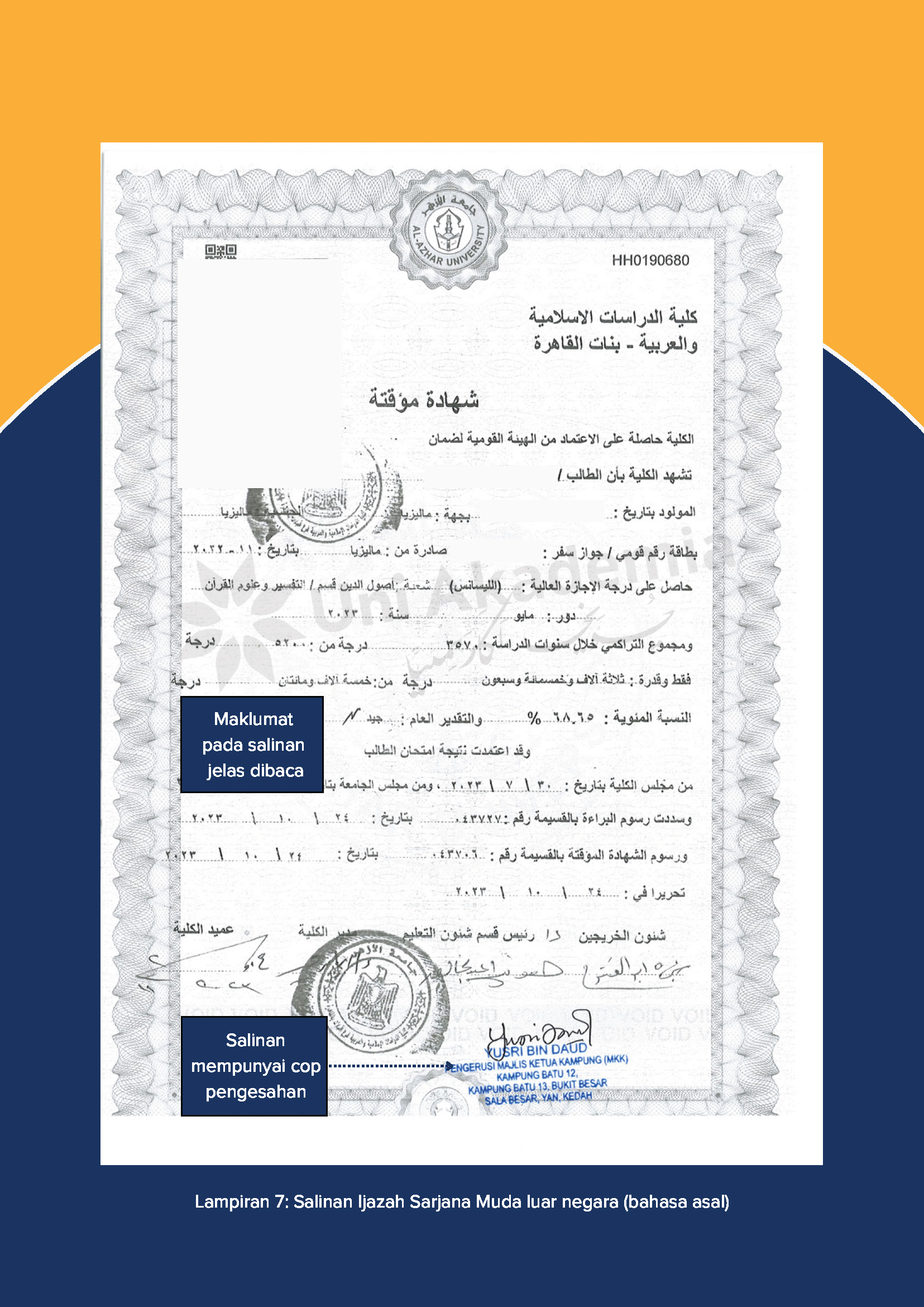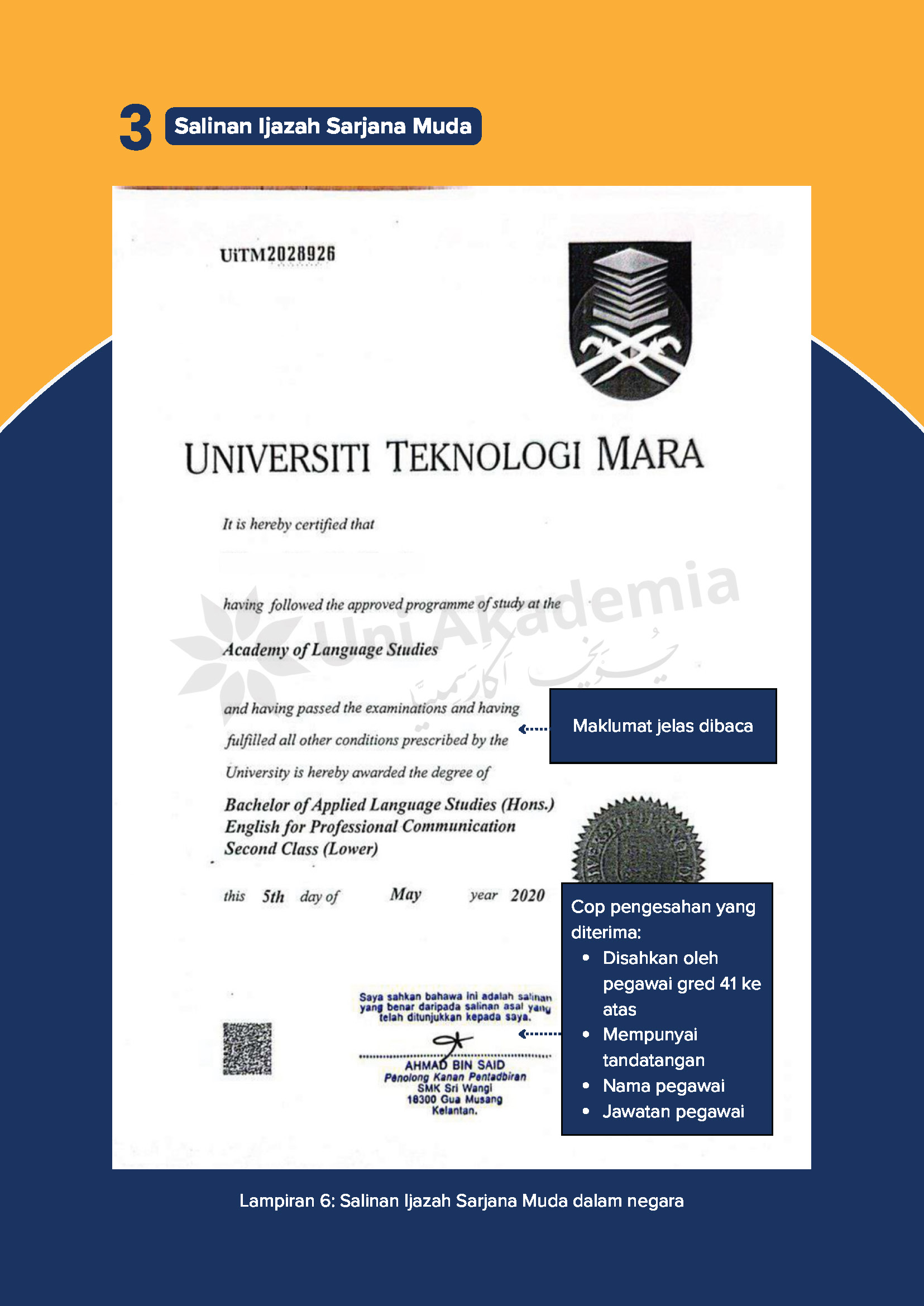 - Salinan asal Ijazah Sarjana Muda (bahasa asal) DAN