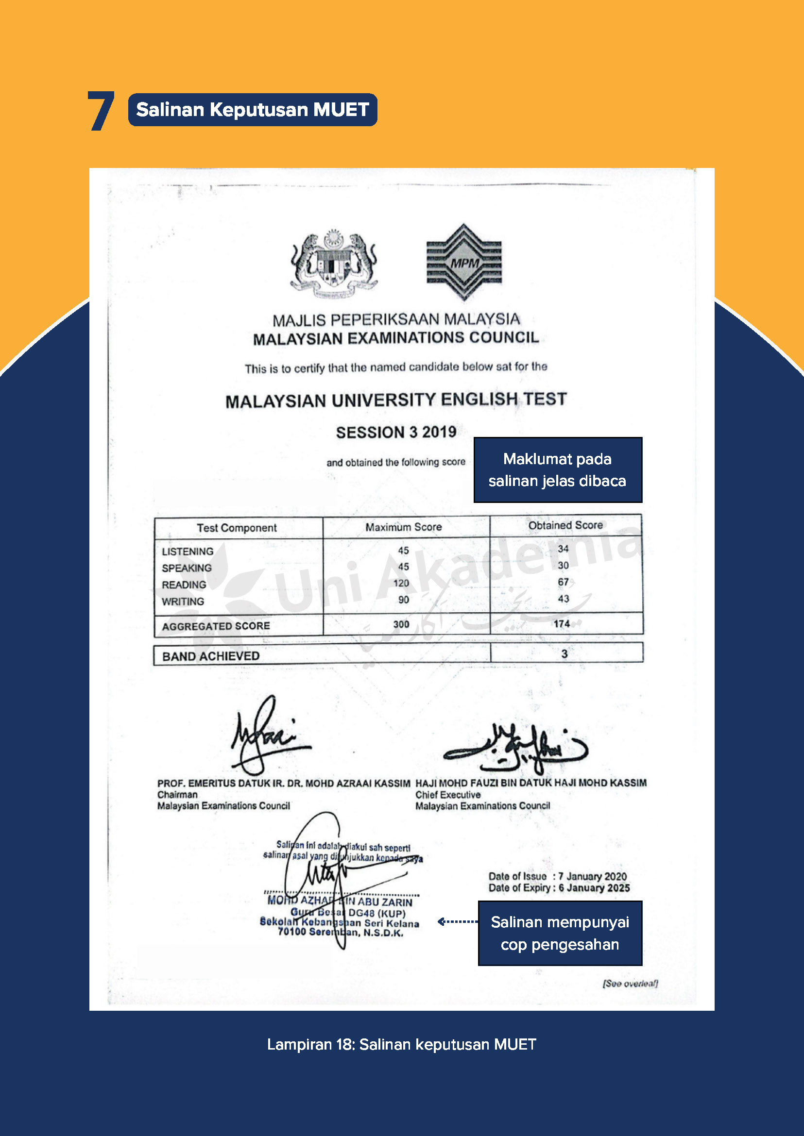 - Salinan keputusan MUET/ IELTS/ TOEFL (sekiranya ada)