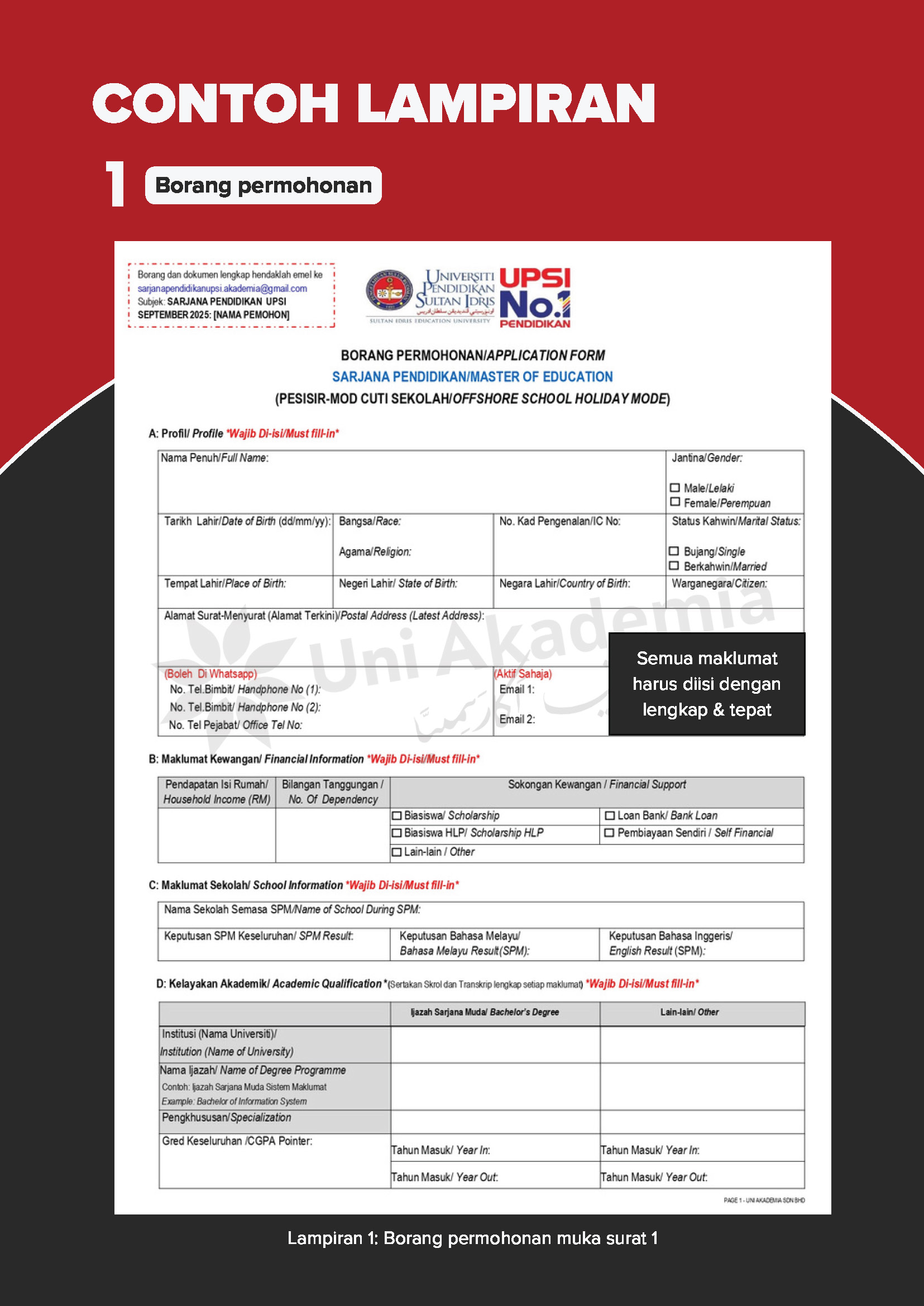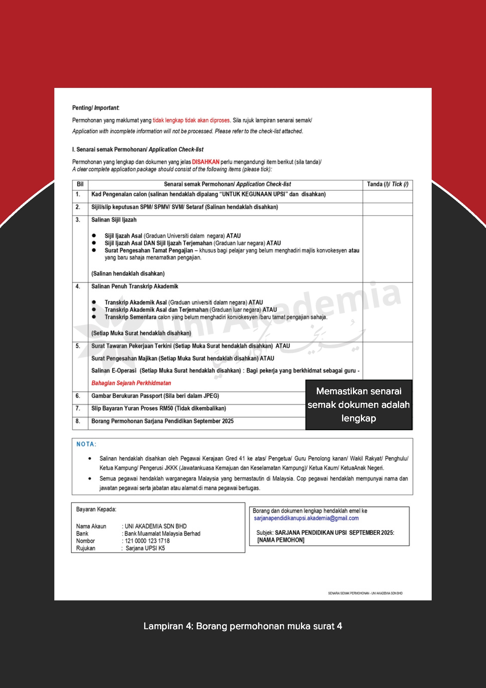 Menghantar semua dokumen ke email: sarjanapendidikanupsi.akademia@gmail.com